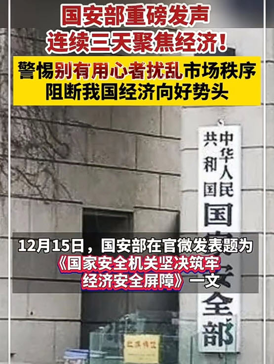 2023年12月13日、14日、15日,中方國安部連續三天重磅發聲,聚焦經濟,標志著國安部成為中方經濟發展的一個重要推手。